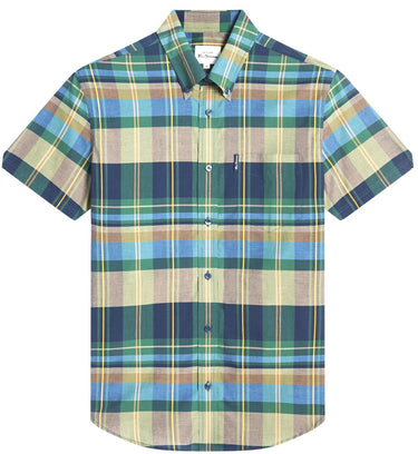 Ben Sherman Men's Short Sleeve Tartan Check in Green Cotton Shirt Size 2Xl-5Xl