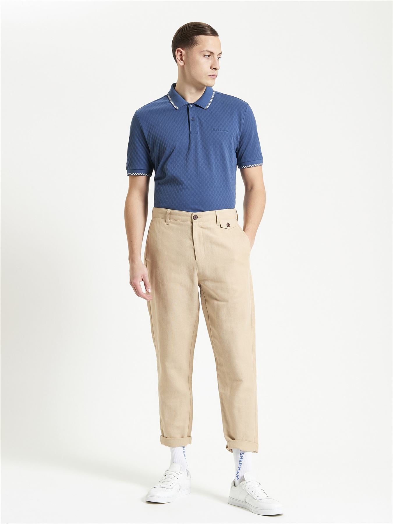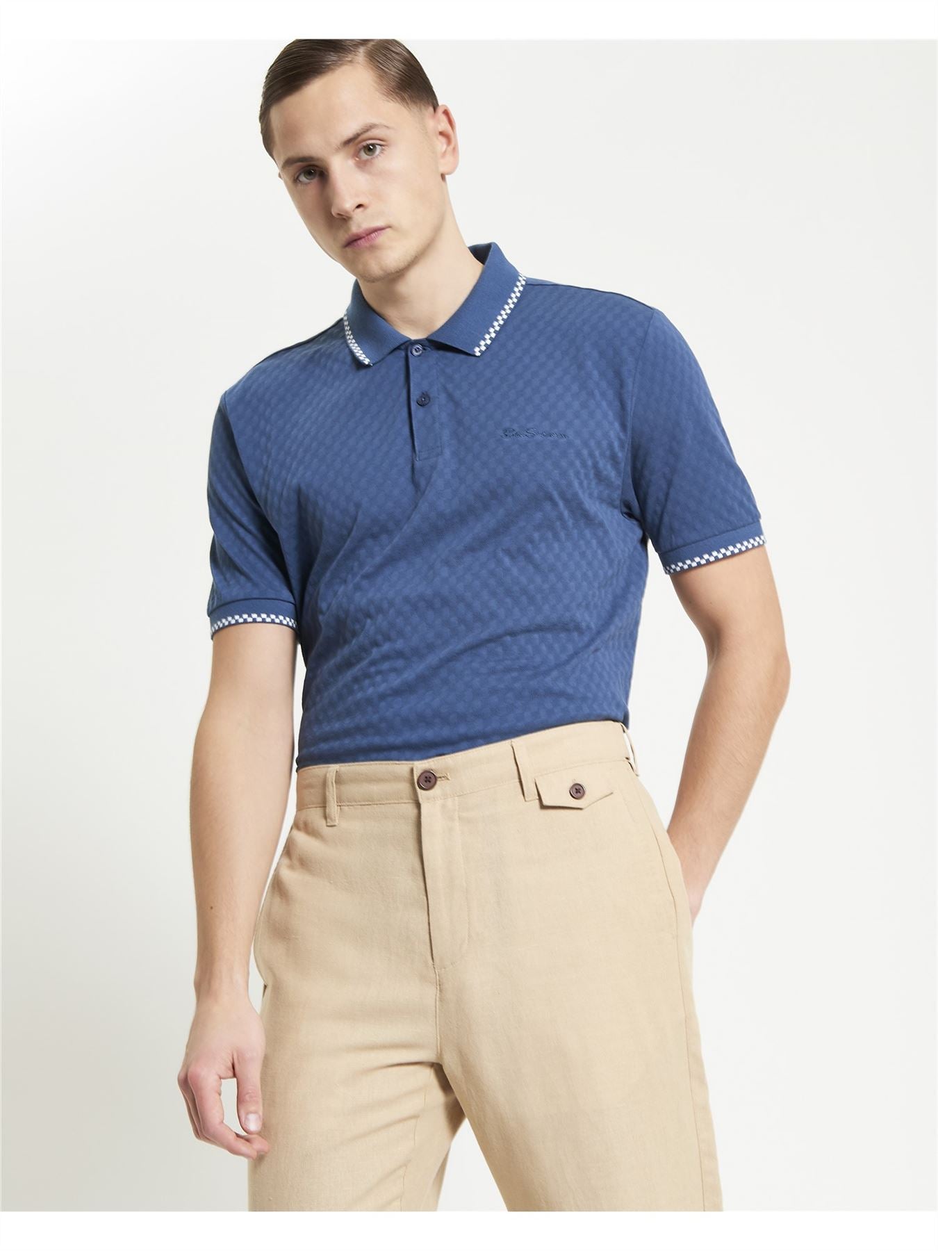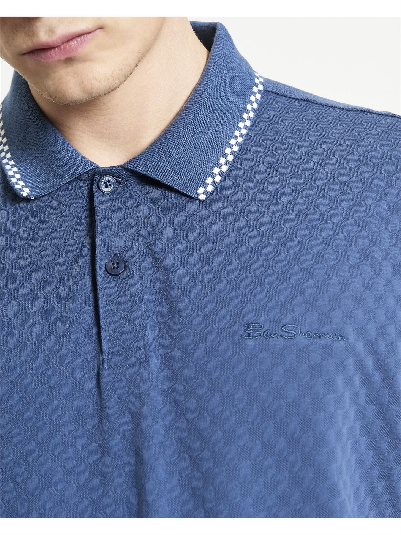 Ben Sherman Chequerboard Texture Polo Shirt For Men in Indigo, 2XL-5XL