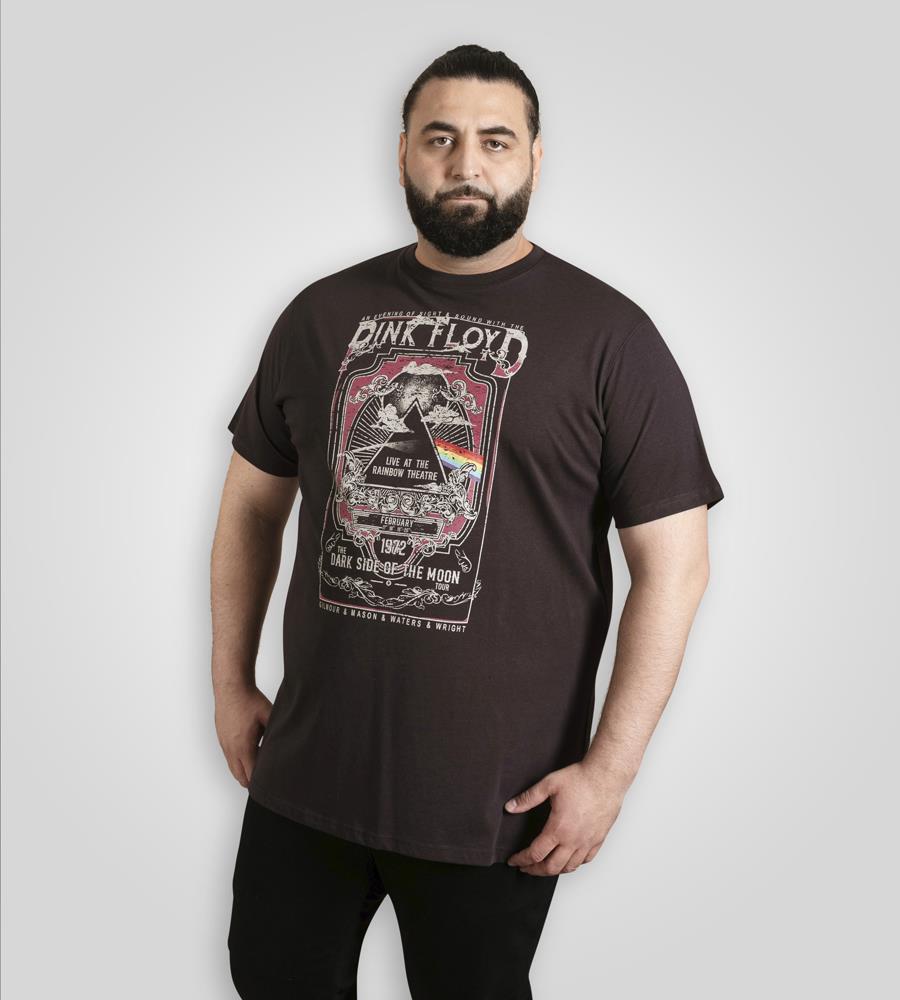 D555 BLACKPOOL Official Pink Floyd Printed T-Shirt For Men in Washed Black, 2XL-10XL