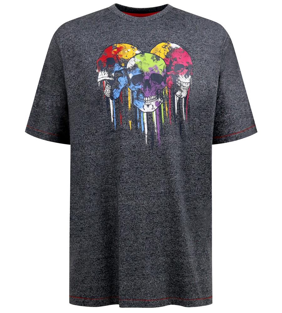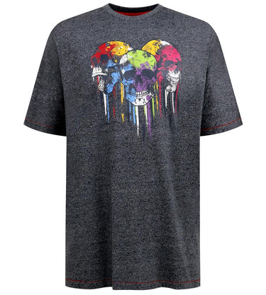Add an edgy vibe to your wardrobe with the D555 COALVILLE Skulls with Coloured Drips Printed Crew Neck T-Shirt. This navy twist t-shirt features a bold and artistic skull print with coloured drips, making it the perfect choice for those who love alternative fashion, rock-inspired style, or unique graphic tees. Made from a soft and durable cotton-poly blend, this t-shirt offers all-day comfort and breathability, making it great for casual wear.