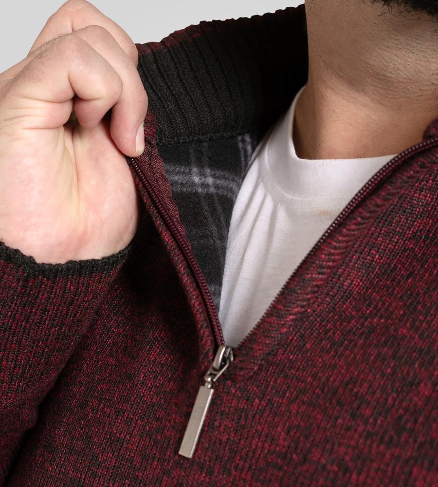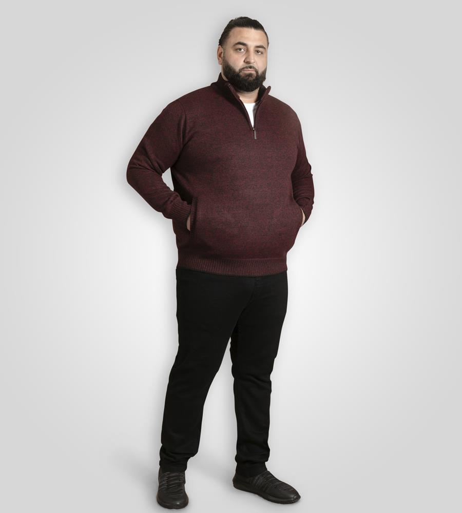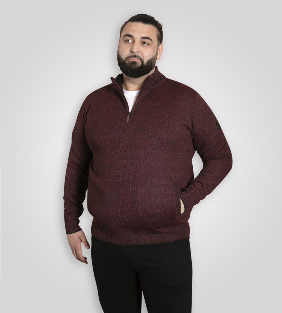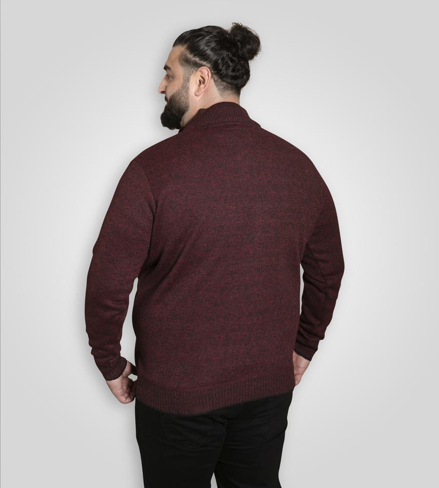 D555 CRAMLINGTON 1/4 Zip Knitted Jumper For Men in Burgundy Marl, 2XL-8XL