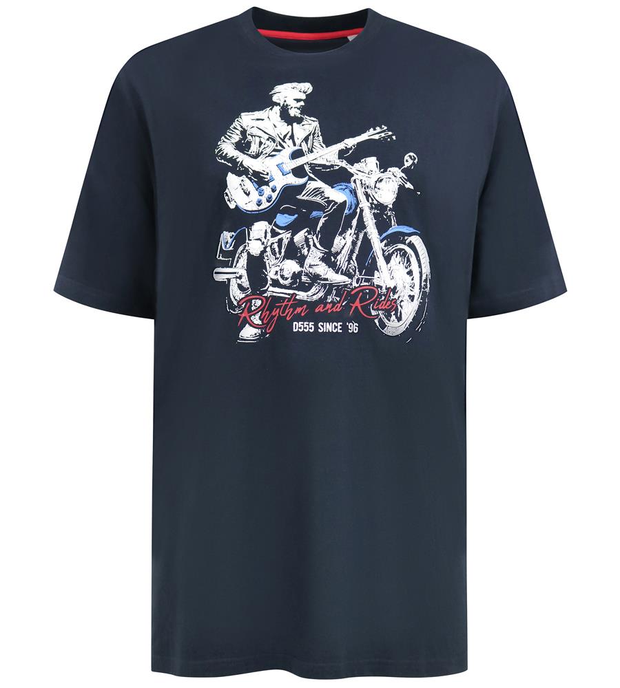 D555 DERBY Rhythm And Rides Motorbike Printed Crew Neck T-shirt For Men in Dark Navy, 2XL-6XL