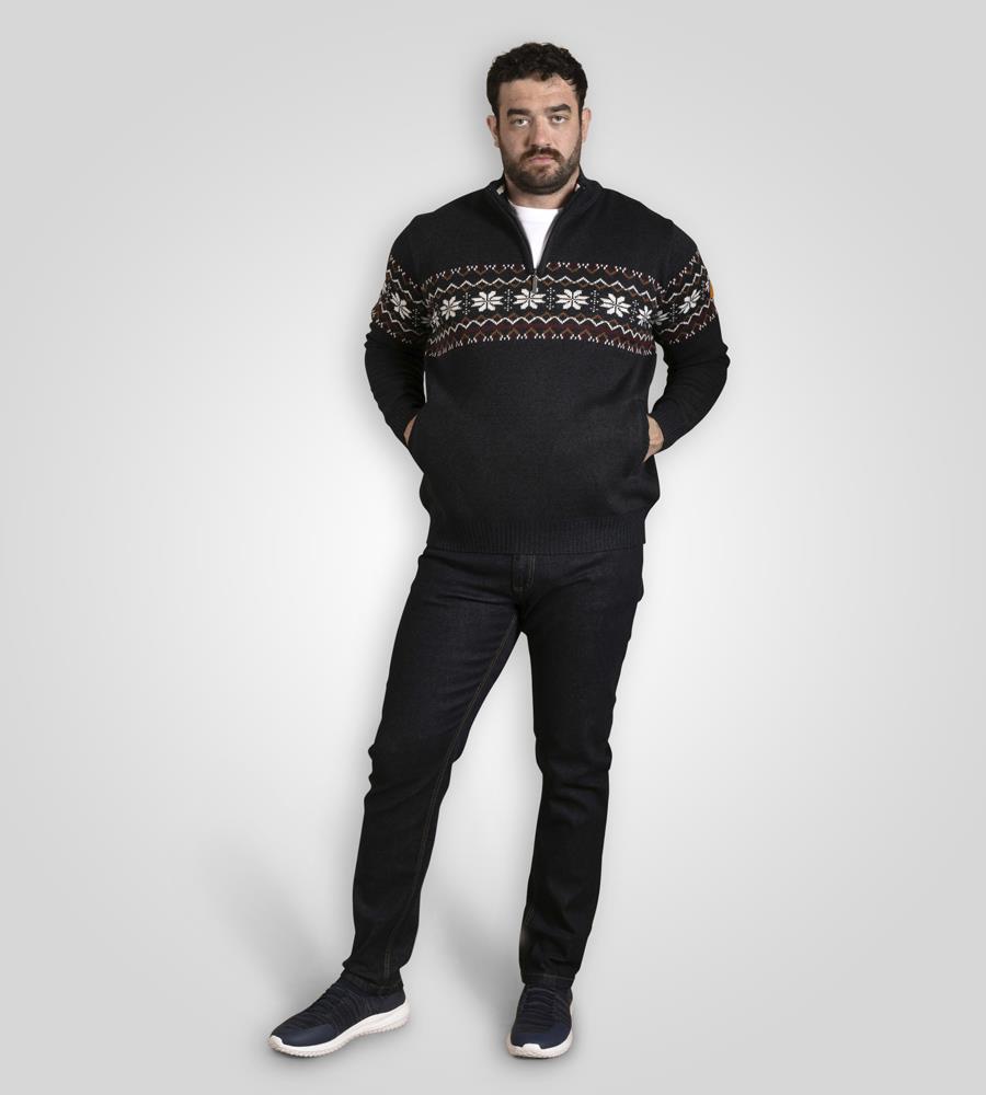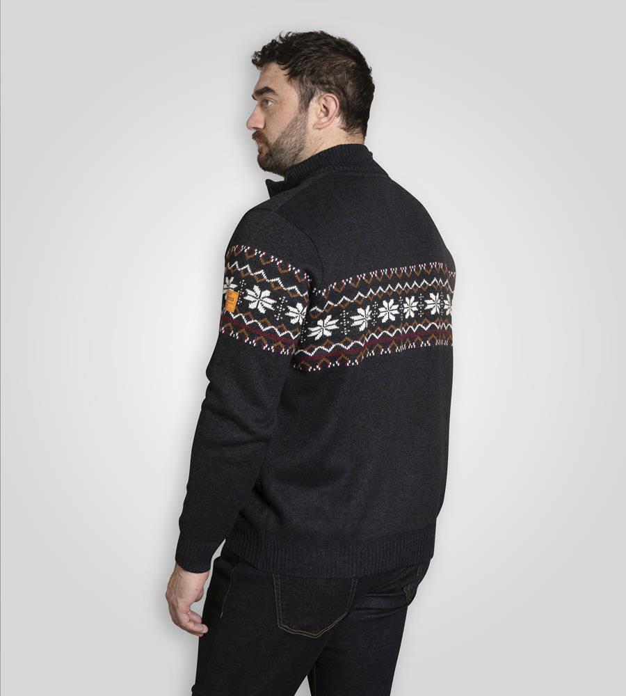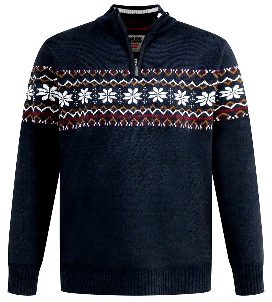 D555 EDINSON 1/4 Zip Knitted Fairisle Jumper For Men in Navy Marl, 2XL-6XL