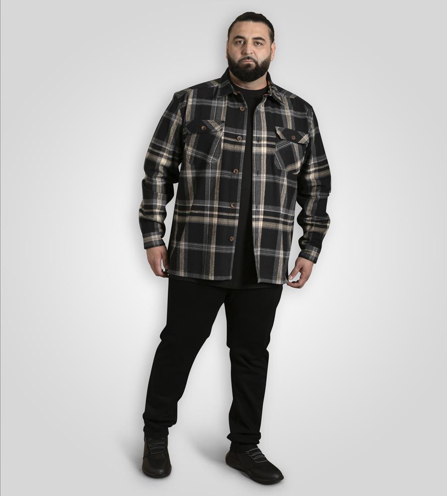 D555 FALKIRK Long Sleeve Heavy Shacket Overshirt For Men in Black/Grey, 2XL-8XL