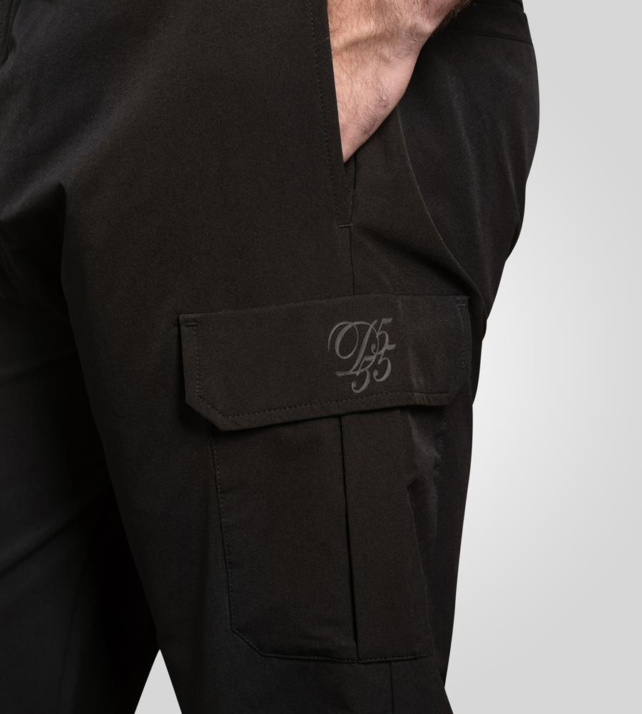 The D555 FERNDOWN Couture Stretch Open Hem Joggers combine functionality, comfort, and modern style, making them an essential addition to any casual wardrobe. These black joggers feature cargo pockets for added storage and an elasticated waistband for an adjustable, relaxed fit. Crafted from a nylon-elastane blend, these joggers offer stretch, breathability, and durability, ensuring comfort for all-day wear.
