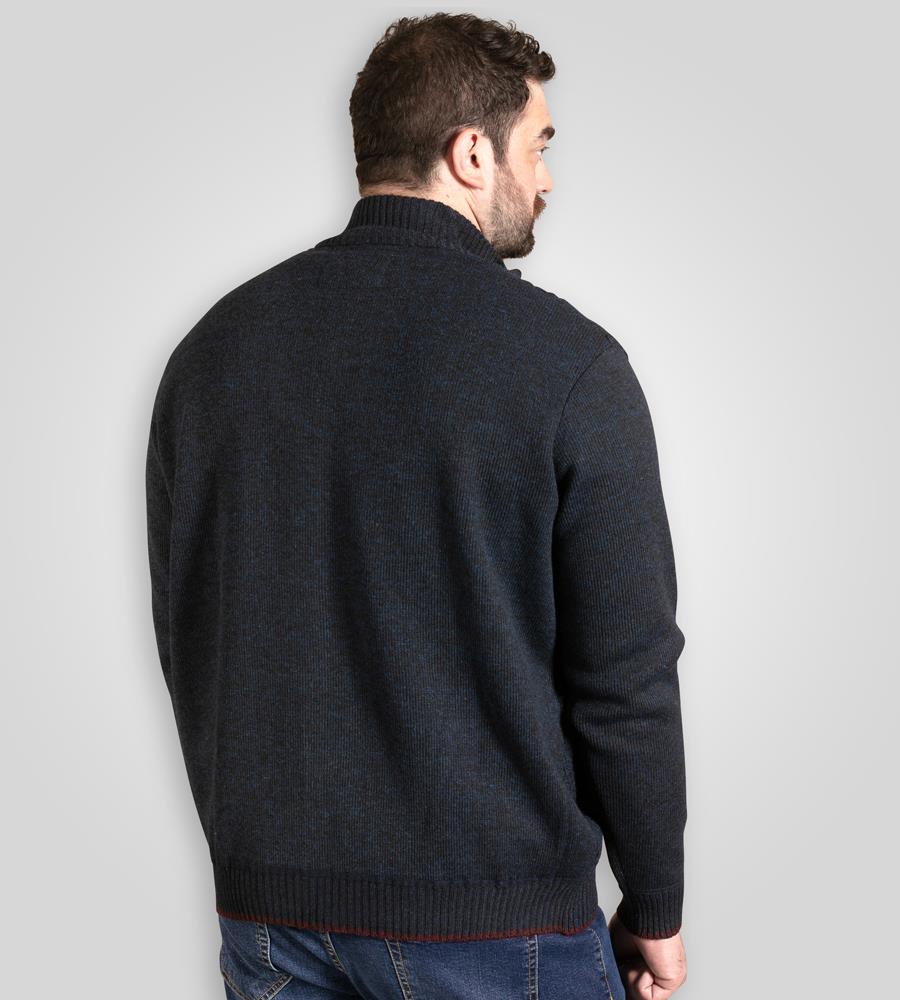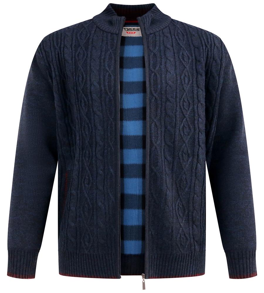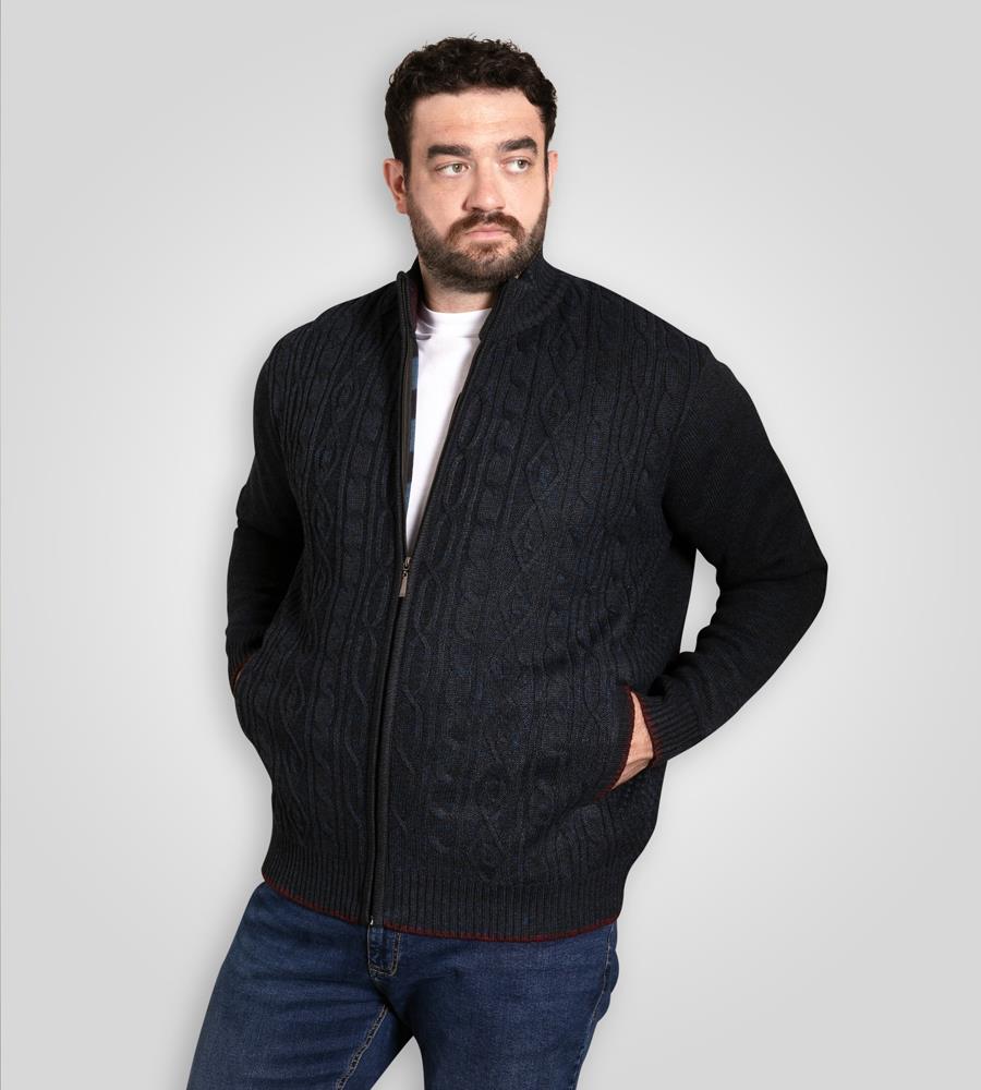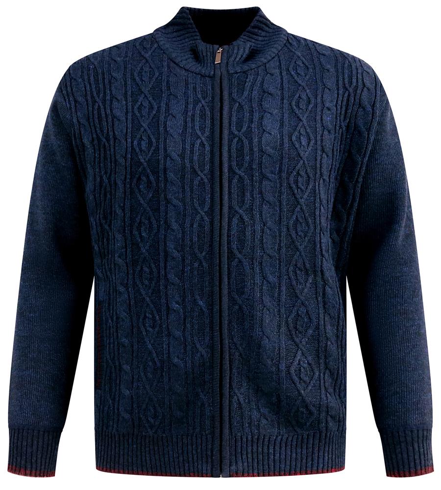 D555 GILLINGHAM Knitted Zip Through Cable Sweater For Men in Navy Marl, 2XL-8XL