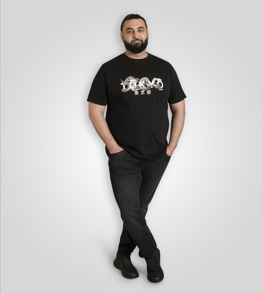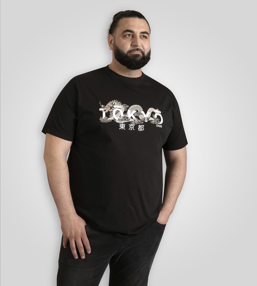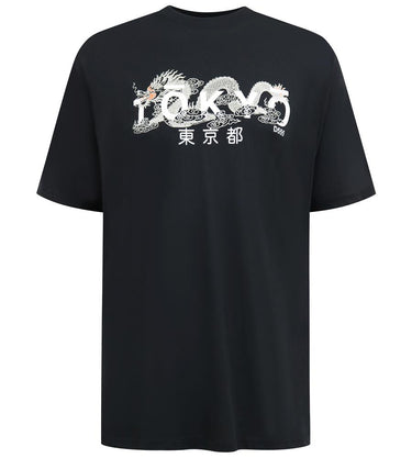 D555 GINZA Tokyo With Dragon Printed Crew Neck T-shirt For Men in Black, 2XL-6XL