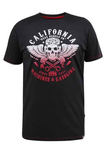 D555 Men's CHARLES California Rebel Skull Gradient Printed T-shirt in Washed Black 2XL to 5XL