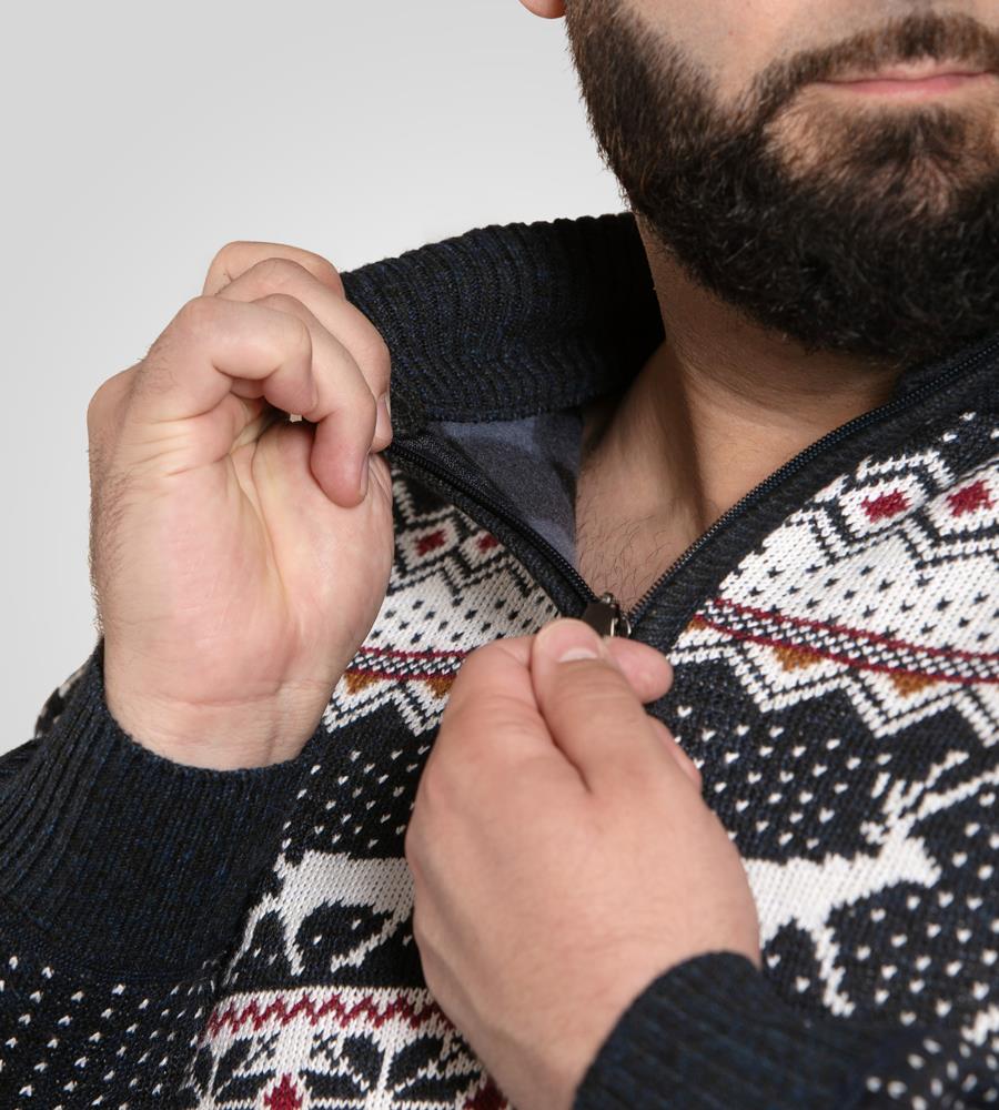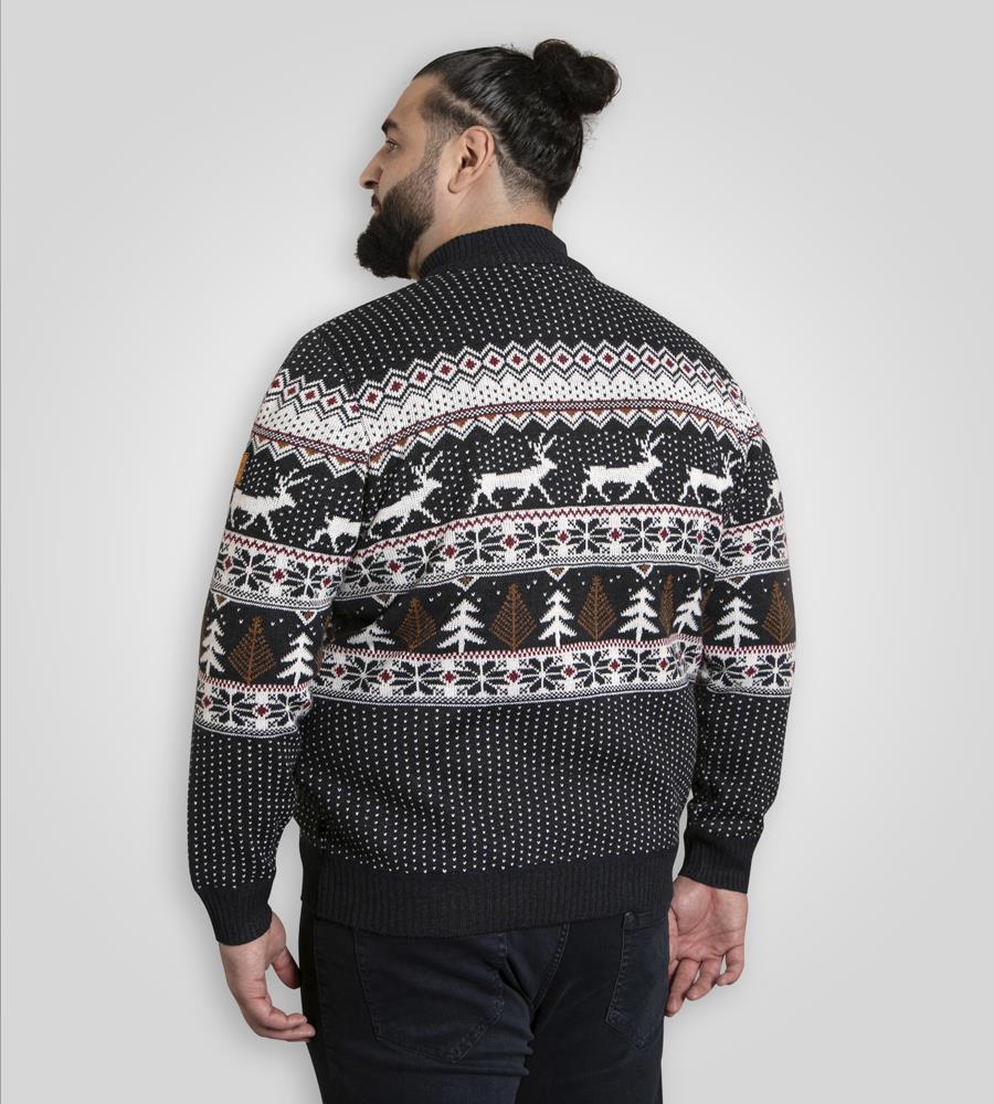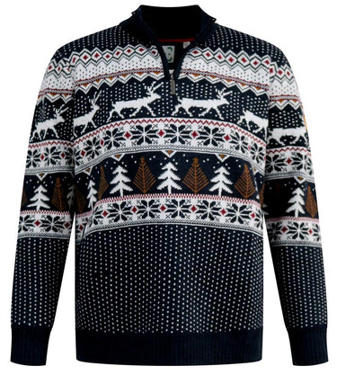 D555 NICHOLAS 1/4 Zip Knitted Christmas Jumper For Men in Navy, 2XL-6XL