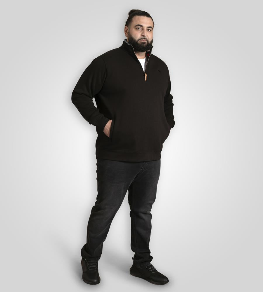 D555 RUSSEL 1/4 Zip Sweatshirt In Fleece For Men in Black, 2XL-8XL