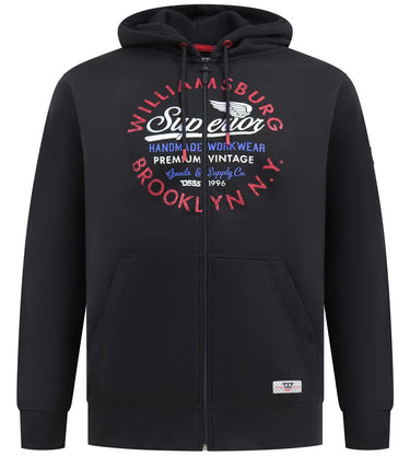 The D555 SOUTHAMPTON is the ultimate full zip hoody, perfect for adding a touch of urban style to your wardrobe. Featuring the iconic Williamsburg Brooklyn chest print, this hoody boasts both comfort and a trendy design. Made from a premium blend of cotton and polyester, it's designed to provide durability and warmth. The classic black color makes it easy to style with any casual outfit.