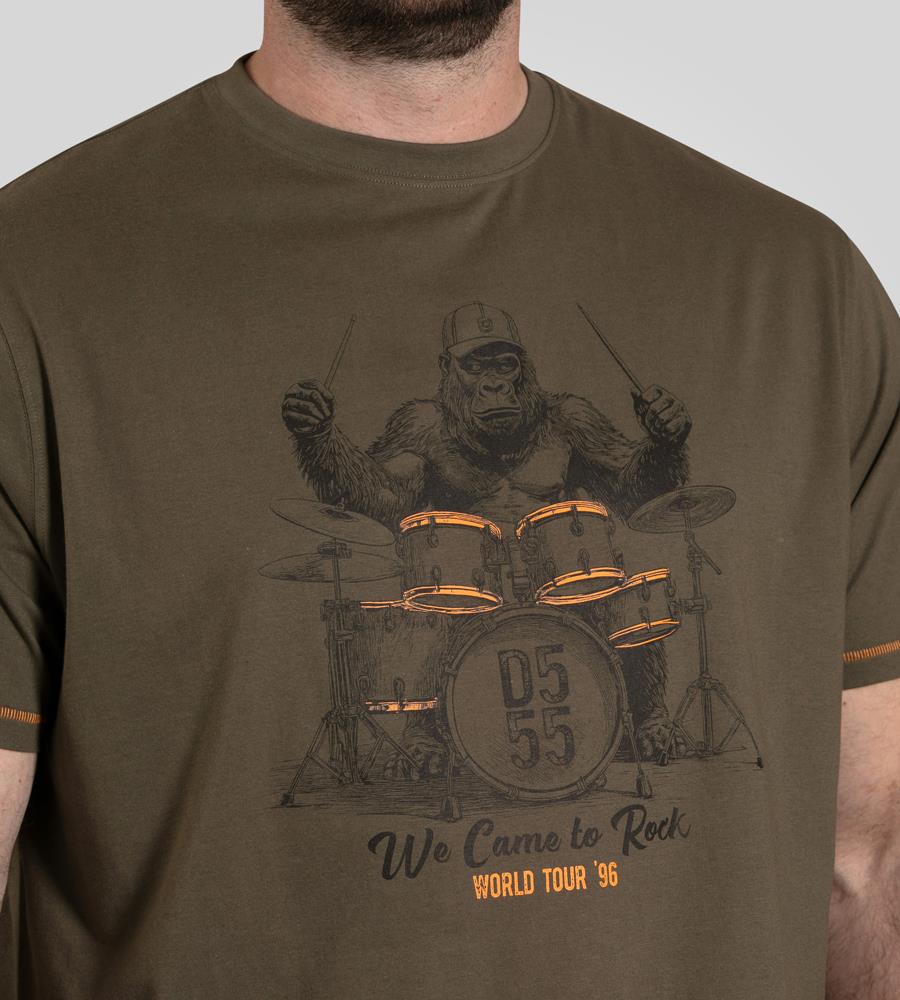 D555 STOCKTON Gorilla Playing Drums Printed Crew Neck T-shirt For Men in Khaki, 2XL-10XL