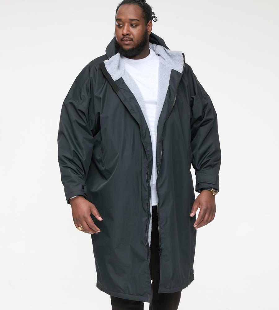 D555 WEBBER Sherpa Lined Showerproof Changing Robe For Men in Black, 2XL-6XL