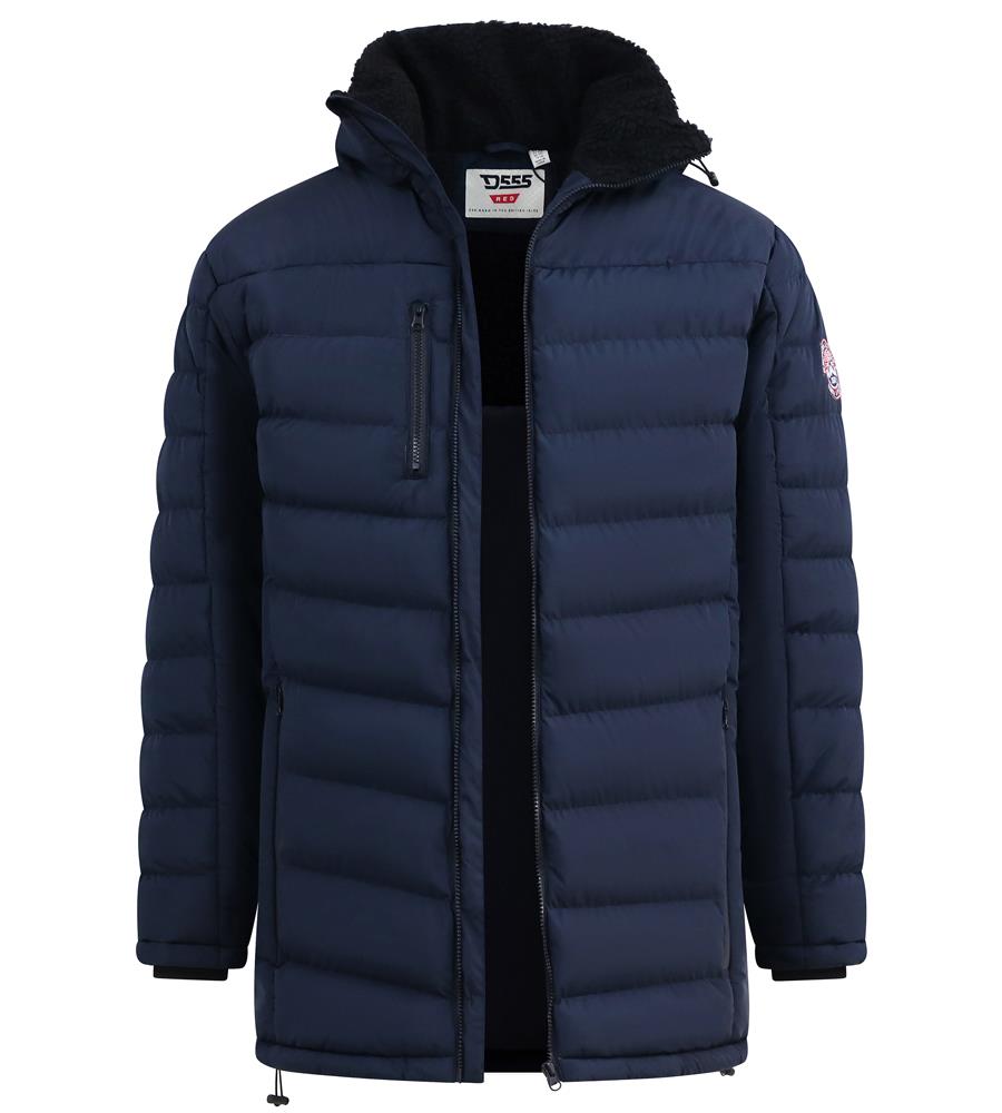 D555 WORKINGTON Hooded Padded Jacket For Men With Sherpa Lining And Detachable Hood in Navy, 2XL-8XL
