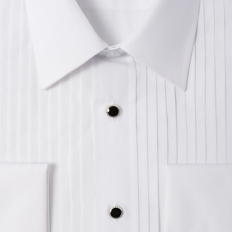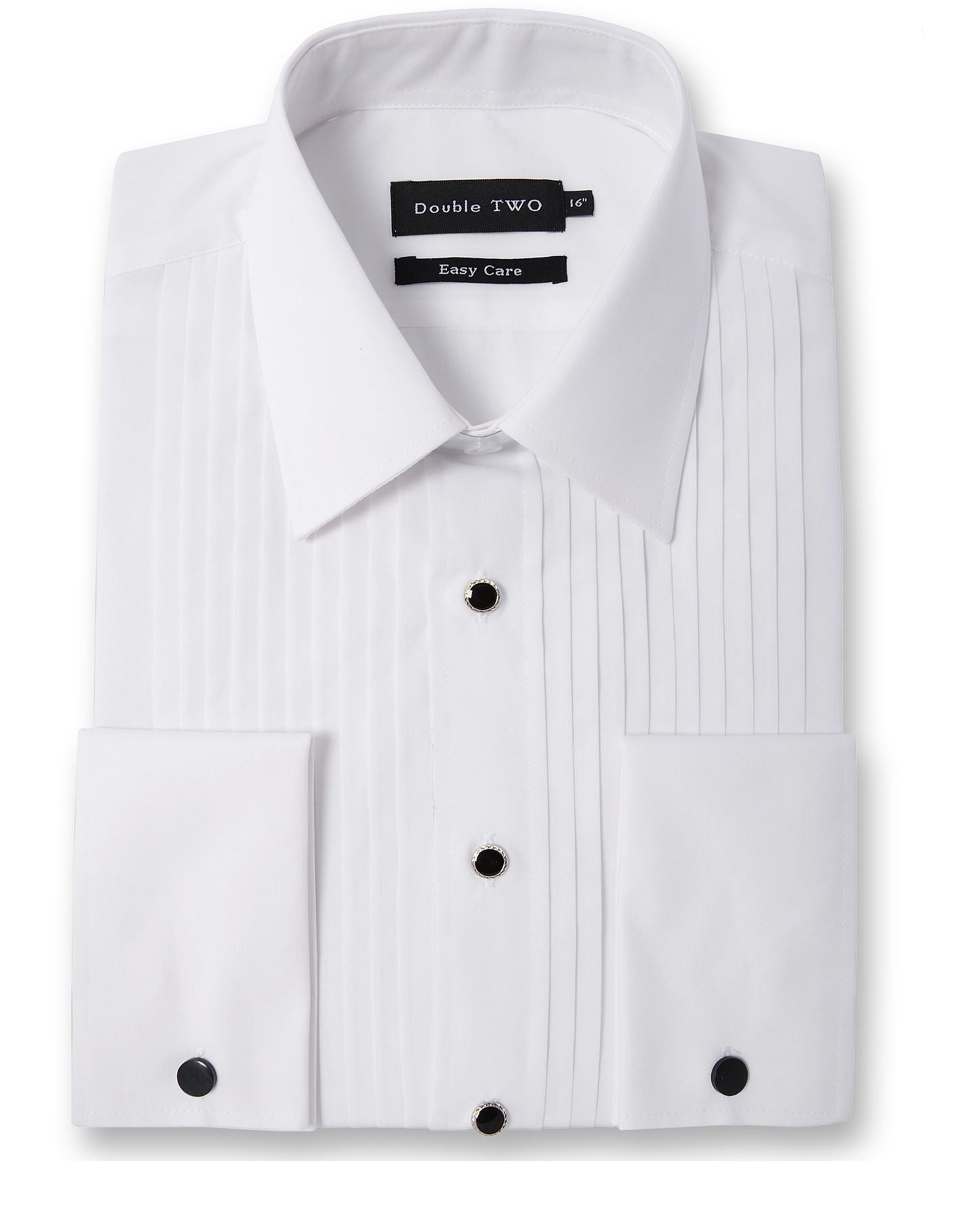 Present these Mens stitch pleat dress shirts stitched to perfection by Double Two. This Double Two shirt features the following, Fabric:55% Cotton 45% Polyester Collar Type:Standard Cuff Type:Double Pleated front panel Standard collar Long sleeve Double cuff Stud front Swept tail Complete your evening look with this black stitch pleat dress shirt. The decorative pleated front panel and sharp collar are sure to make an elegant impression. It features a stud front, double cuff and is also available in white. Double TWO tailors its shirts using the finest fabrics so you can rely on the historic British company for the highest-quality eveningwear. Pair with a silk bow tie to complement the refined finish making it suitable for a sophisticated evening attire. The Double Two men's shirt has led a varied life since its inception in 1940. Moving through the revolutionary styles of the 1950's and 60's, enduring flounces and frills of the 1980's and we are still here to tell the tale. We are firmly established as a modern classic and mainstay of the British Tailoring scene.