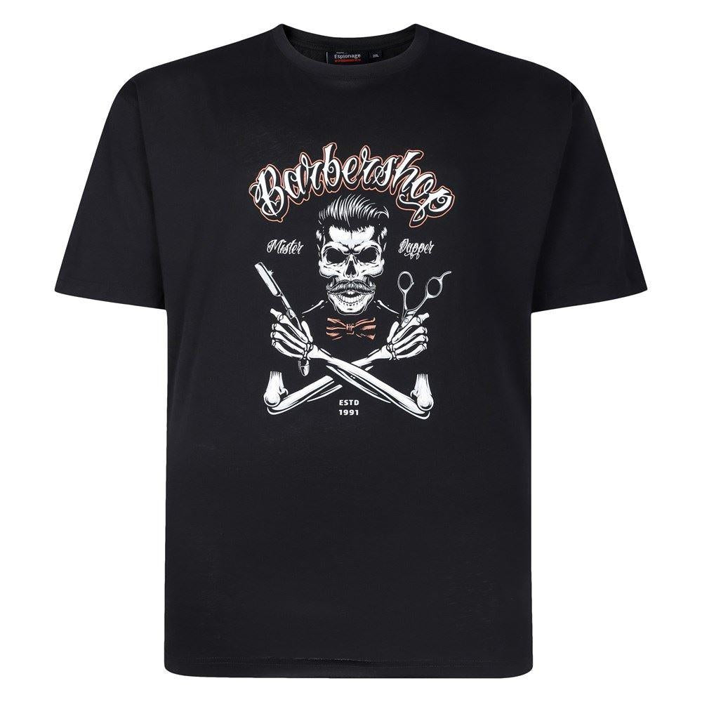 Espionage Barbershop Print Tee For Men in Black, 2XL-8XL