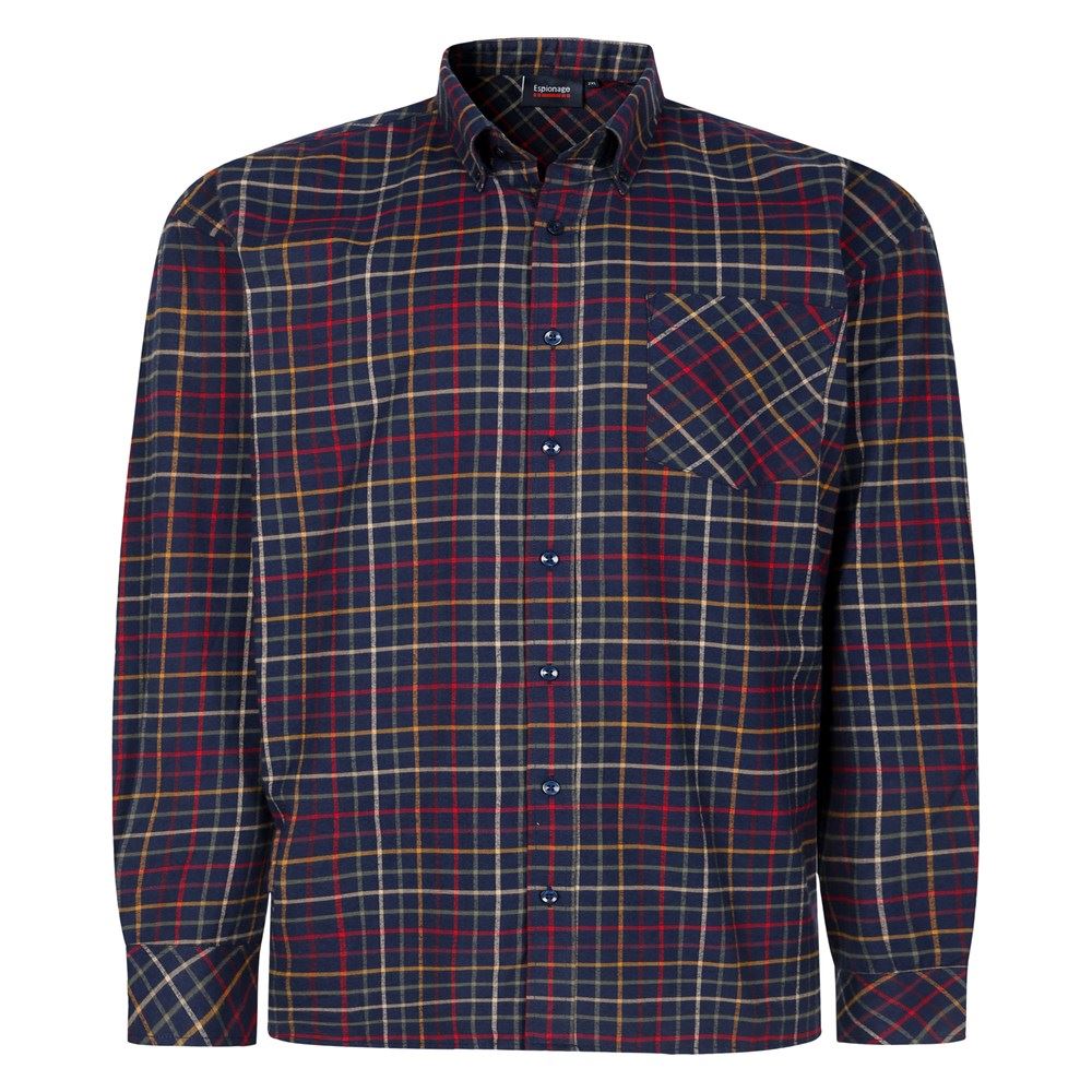 Espionage Long Sleeve Brushed Check Shirt For Men in Navy Multi 2XL-8XL