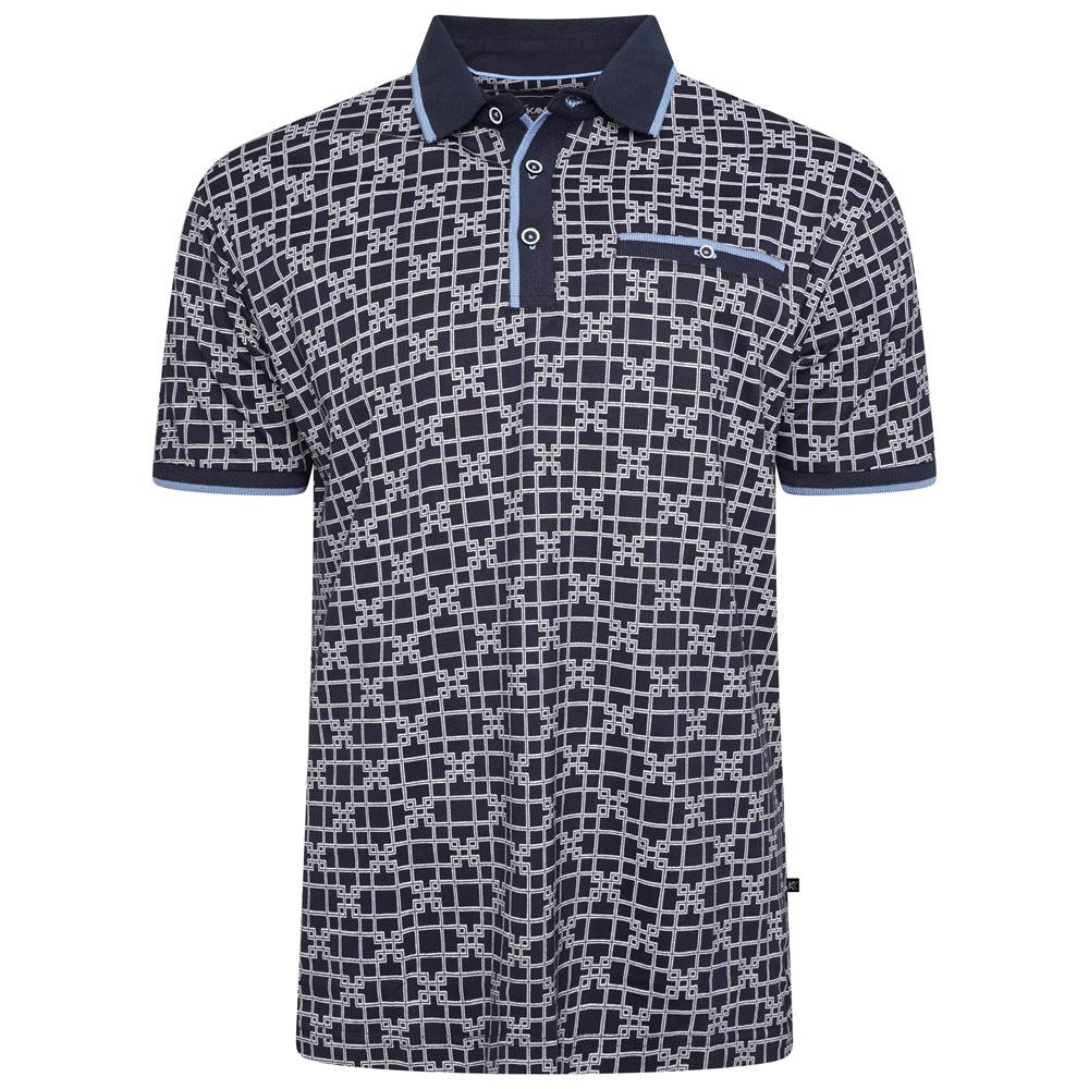 The KAM polo shirt is stylish and comfortable as it is made with Jersey fabric to give it a soft touch finish. The all over Geo Print gives this shirt a unique and interesting look, making it perfect for either a casual holiday evening or an informal office event.