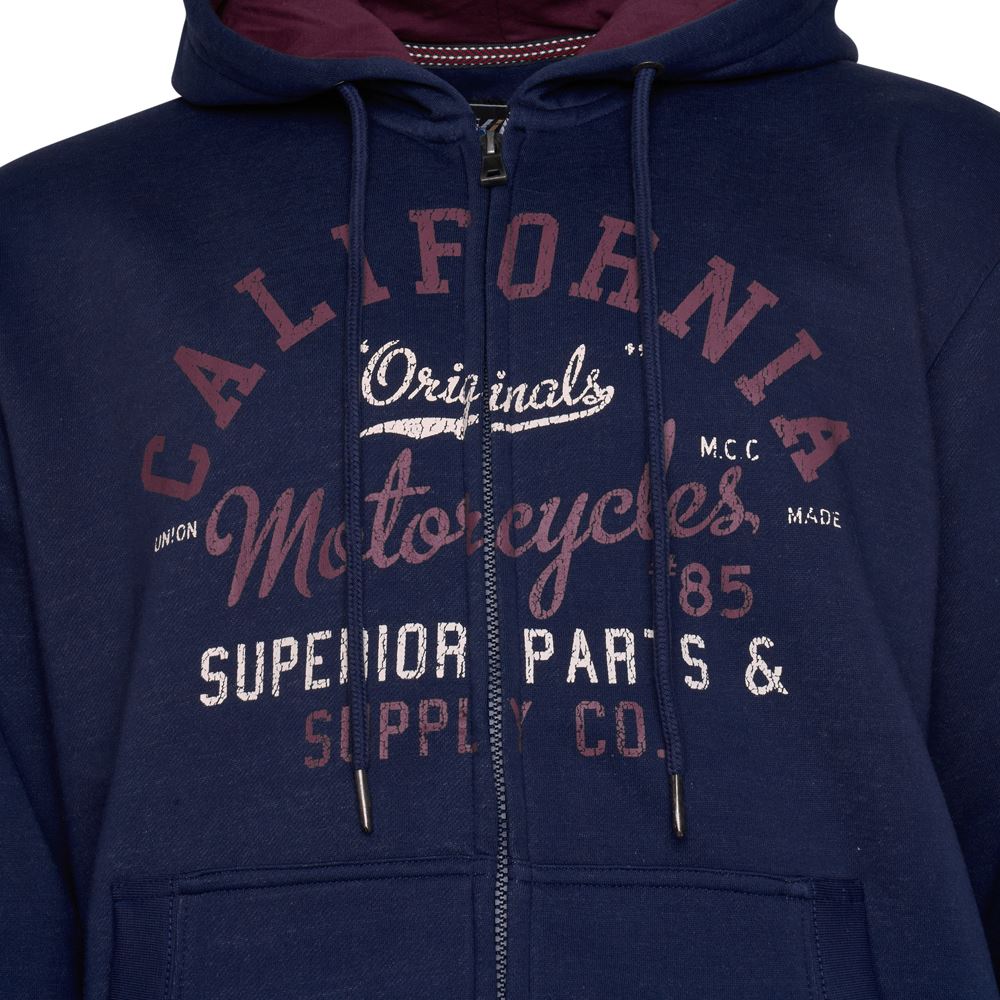 Crafted from a soft cotton-rich fabric (80% cotton, 20% polyester), this hoodie provides a perfect balance of warmth and breathability. The bold ‘California Motorcycle’ chest print adds a touch of vintage Americana, making it ideal for everyday casual wear.