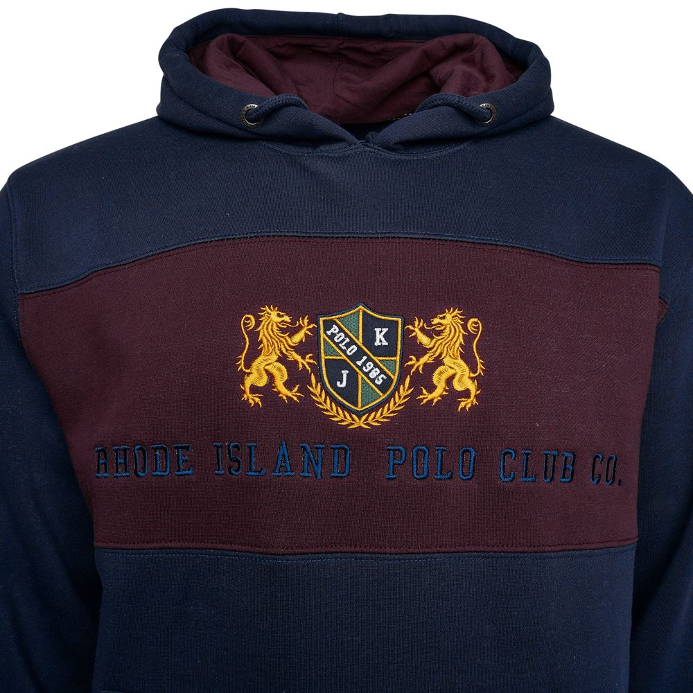 Crafted from a soft cotton-rich blend (80% cotton, 20% polyester), this hoodie features a two-tone panel design for a sporty finish. The standout embroidered “Rhode Island Polo Club” logo and coat of arms add a bold statement across the chest, reflecting Kam’s signature attention to detail.