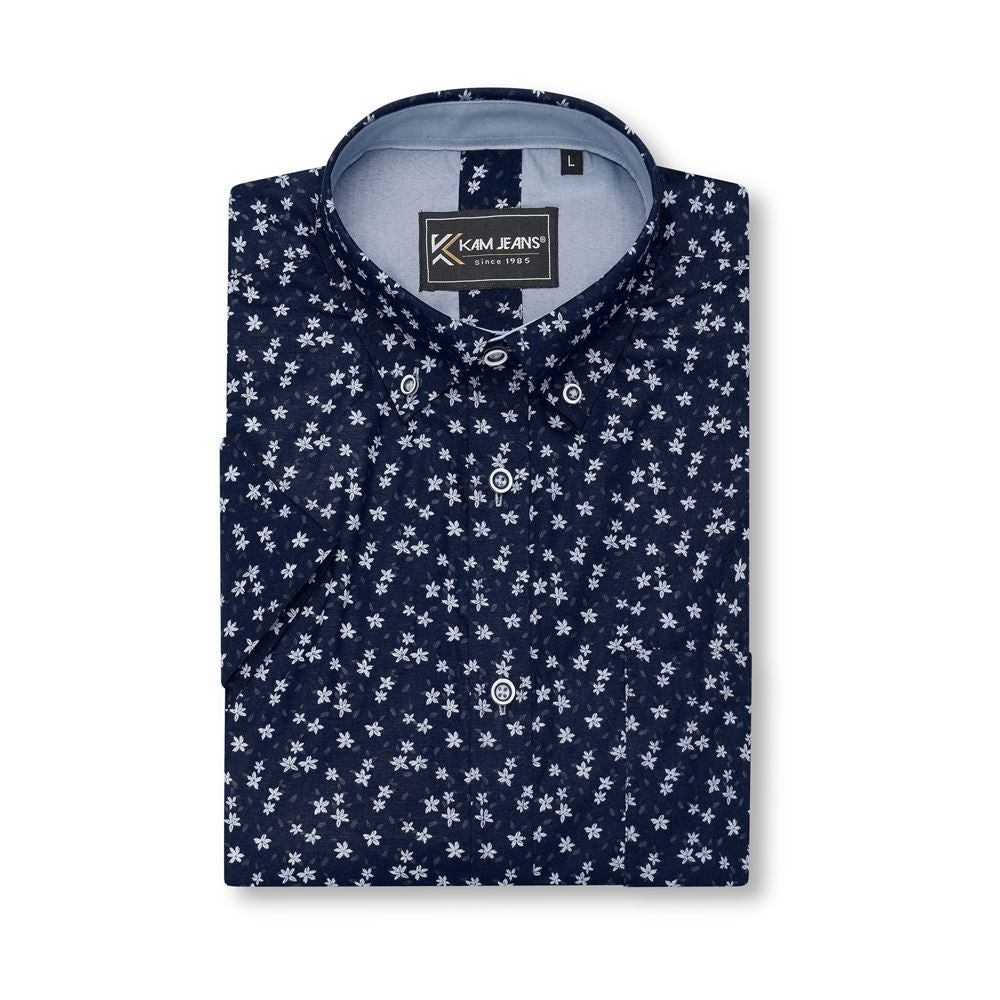 Kam Plus Size Short Sleeve All Over Floral Print Shirt For Men in Navy, 2XL-8XL