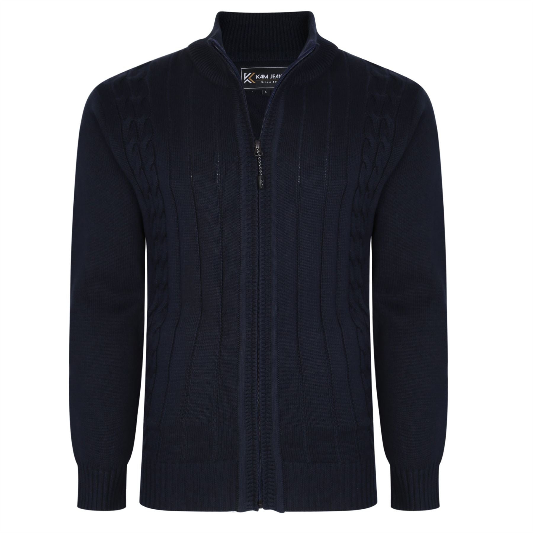 Kam Plus Size Zip Thru Cable Knit Cardigan For Men in 2 Colours, 2XL-8XL
