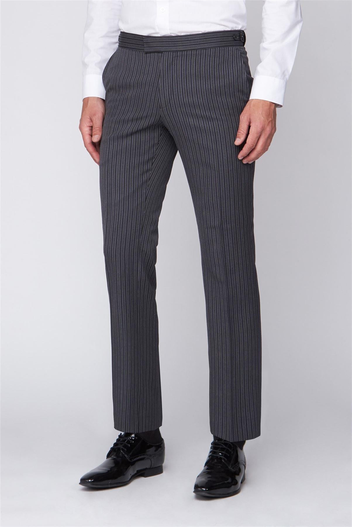 A classic striped design and high waisted fastening creates the perfect companion for our signature morning suit jacket. This wool blend pair of morning suit trousers features a striped black colour scheme that perfectly matches with any wedding, funeral or race day event.