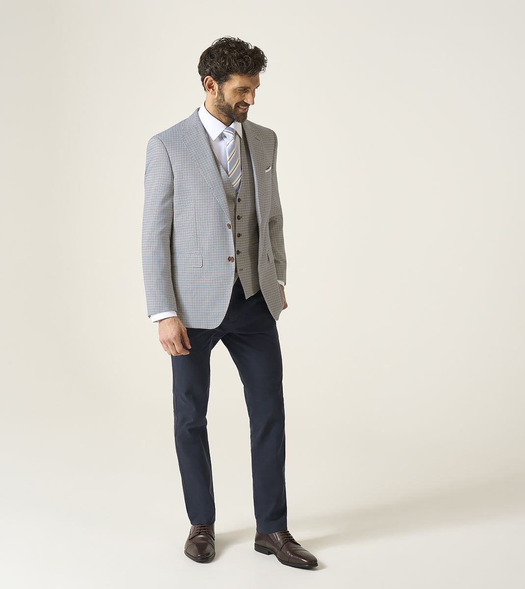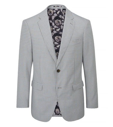 Features include lower waist flap pockets, floral print lining, horn effect buttons, pull-out pocket hankie with twin side vents.Made from 65% Polyester 35% Viscose