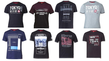 Quick View Choose options D555 Men's Pure Cotton Printed Tee Size 2XL-6XL From £14.95 GBP /PLUMBLACKNavyNAVYWHITECharcoal (Dallas)RED -