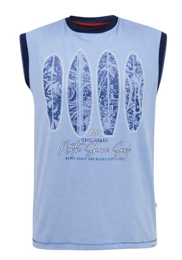 D555 Men's BRETTON Surf Board Printed Sleeveless T-Shirt in Blue marl 2XL to 5XL