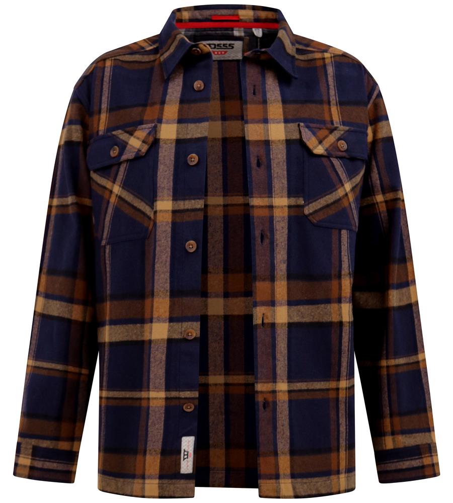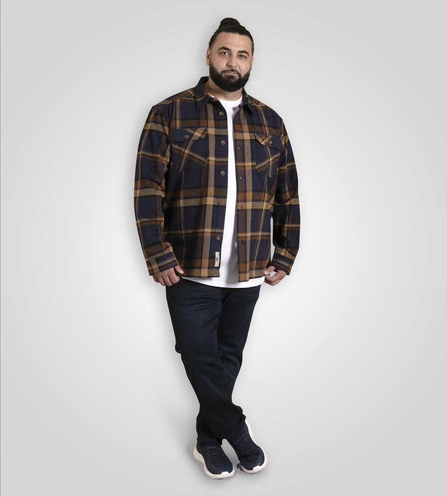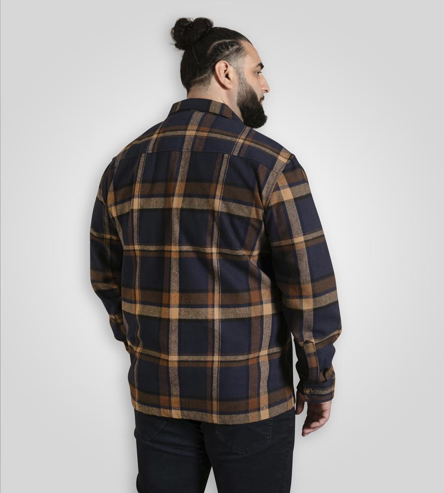 D555 ALDERSHOT Long Sleeve Check Heavy Shacket Overshirt For Men in Navy/Tan, 2XL-6XL