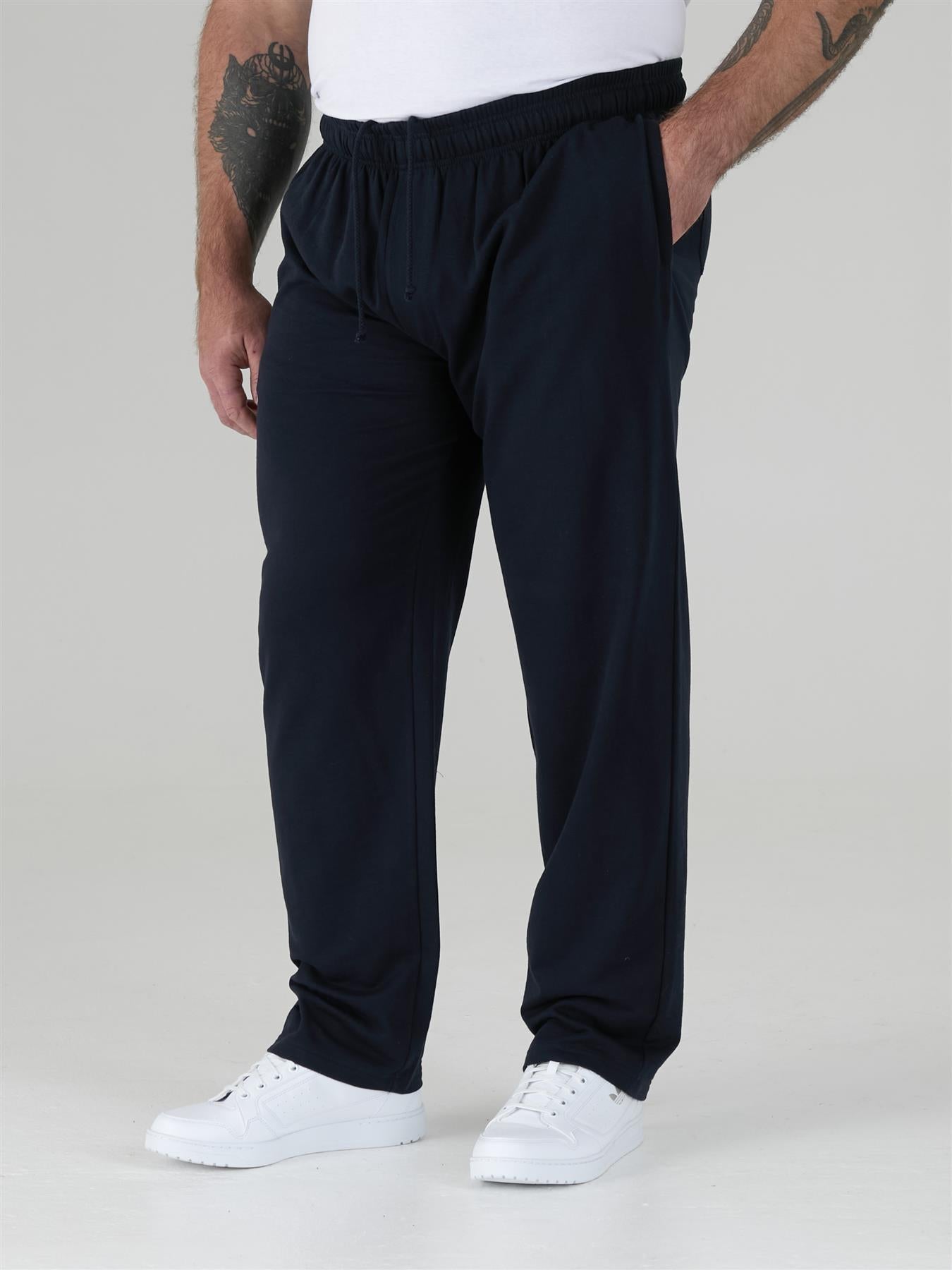 The Duke Clothing Co is the "RORY - D555 Kingsize Lightweight Fleece Jogging Bottom With Open Hem". These jogging bottoms are designed for larger men, with sizes ranging from 1XL to 8XL. They are available in three different colors: black, navy, and grey.