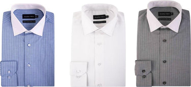 Quick View Choose options Double Two Mens Pure Cotton Patterned LS Shirt (3781) in Blue Stripe White Collar Size 18-23 3 Colours Options £31.95 GBP /White Stripe White CollarBlack Stripe/White CollarBlue Stripe White Collar -