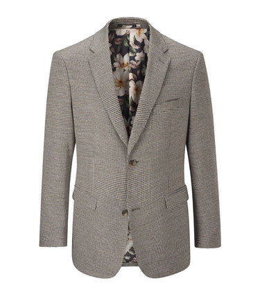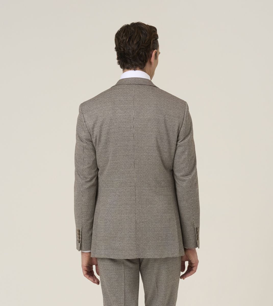 Cannon suit jacket in brown / stone houndstooth stretch fabric.