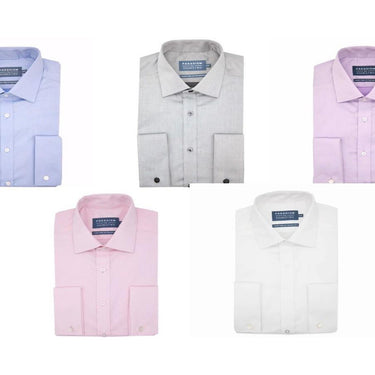 Elevate your style with Double Two/Paradigm's pure cotton, non-iron formal shirts. Featuring a double cuff and micro twill fabric, these shirts come in 7 sophisticated colors. Experience luxury and convenience in one elegant package, from size 14.5 to 23.