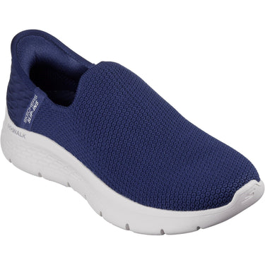 Step-in to convenient walking comfort and cushioning wearing Skechers Hands Free Slip-ins GO WALK Flex - Sunset View. This TOUCHLESS FIT slip-on design features a Stretch Fit mesh upper and our exclusive Heel Pillow