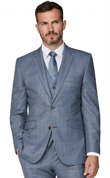SCOTT Mens Classic Fit Light Blue Tan Over Check Suit Jacket Size 36 - 60