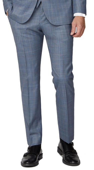 SCOTT Mens Premium Classic Fit Light Blue Tan Over Check Suit Trousers Size 30 - 60