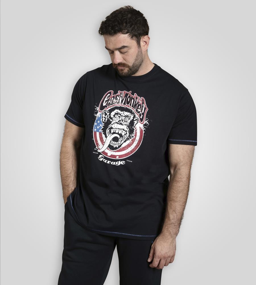 D555 BIRKENHEAD Official Gas Monkey American Flag Printed Crew Neck T-Shirt For Men in Navy, 2XL-6XL