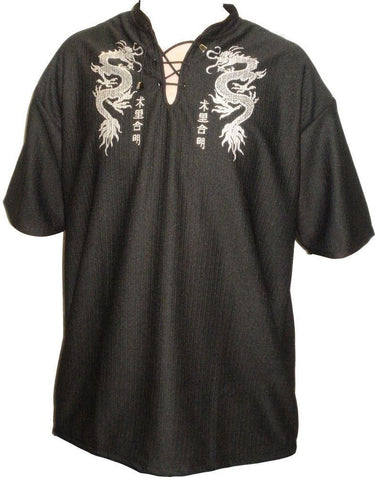 Mens Easy Care Dragon Printed Mandarin Collar Tee Shirt in Size Small to 9XL